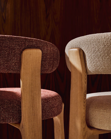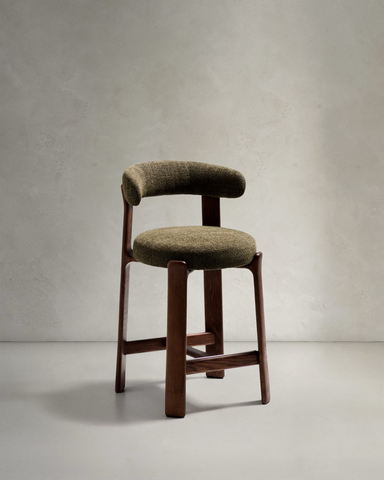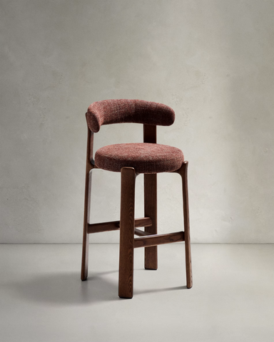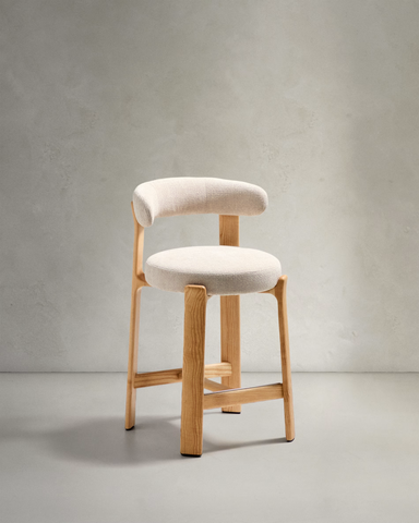 Granite Stool with Backrest | 65cm | Beige & Natural Wood Finish