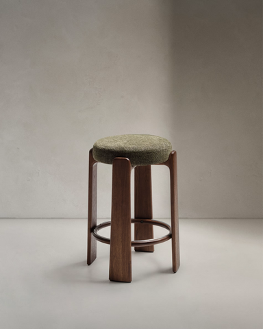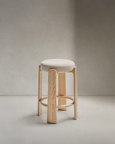 Granite Stool | 75cm | Beige & Natural Wood Finish