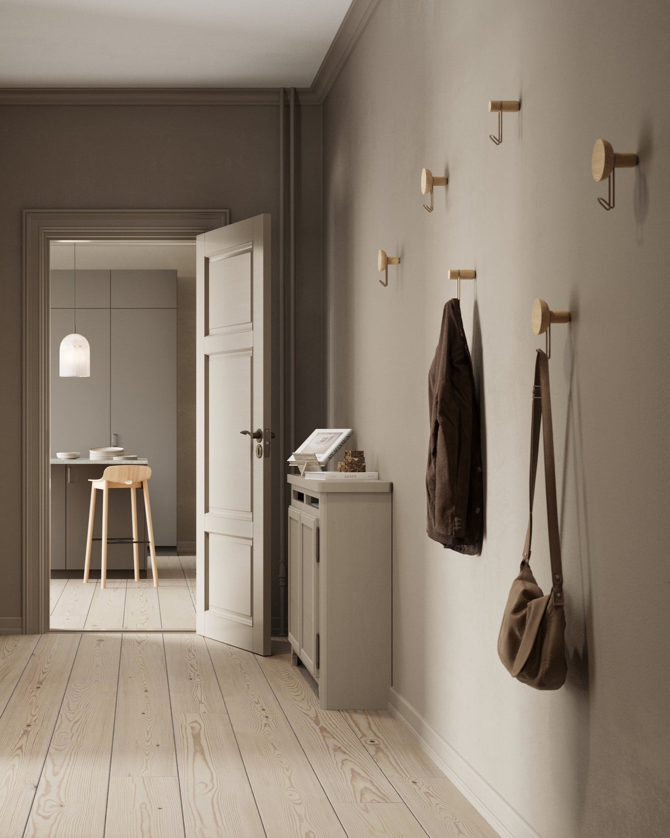 Simple yet graphic, the Around wall hangers combine interesting aesthetics and functionality. The Around wall hangers are available in two sizes and three colours that can easily be combined and create a harmonious composition on the wall. Choose between a black or satin metal hook for all finishes.