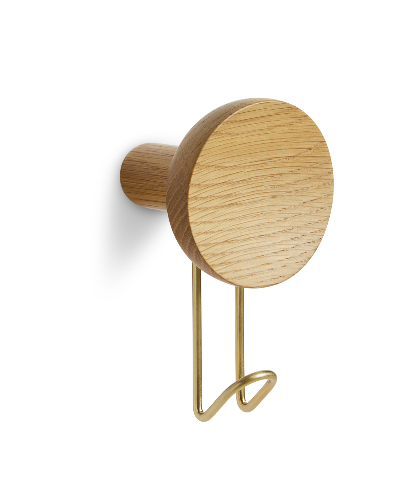 Material: White pigmented lacquered solid oak with satin brass plated metal hook
