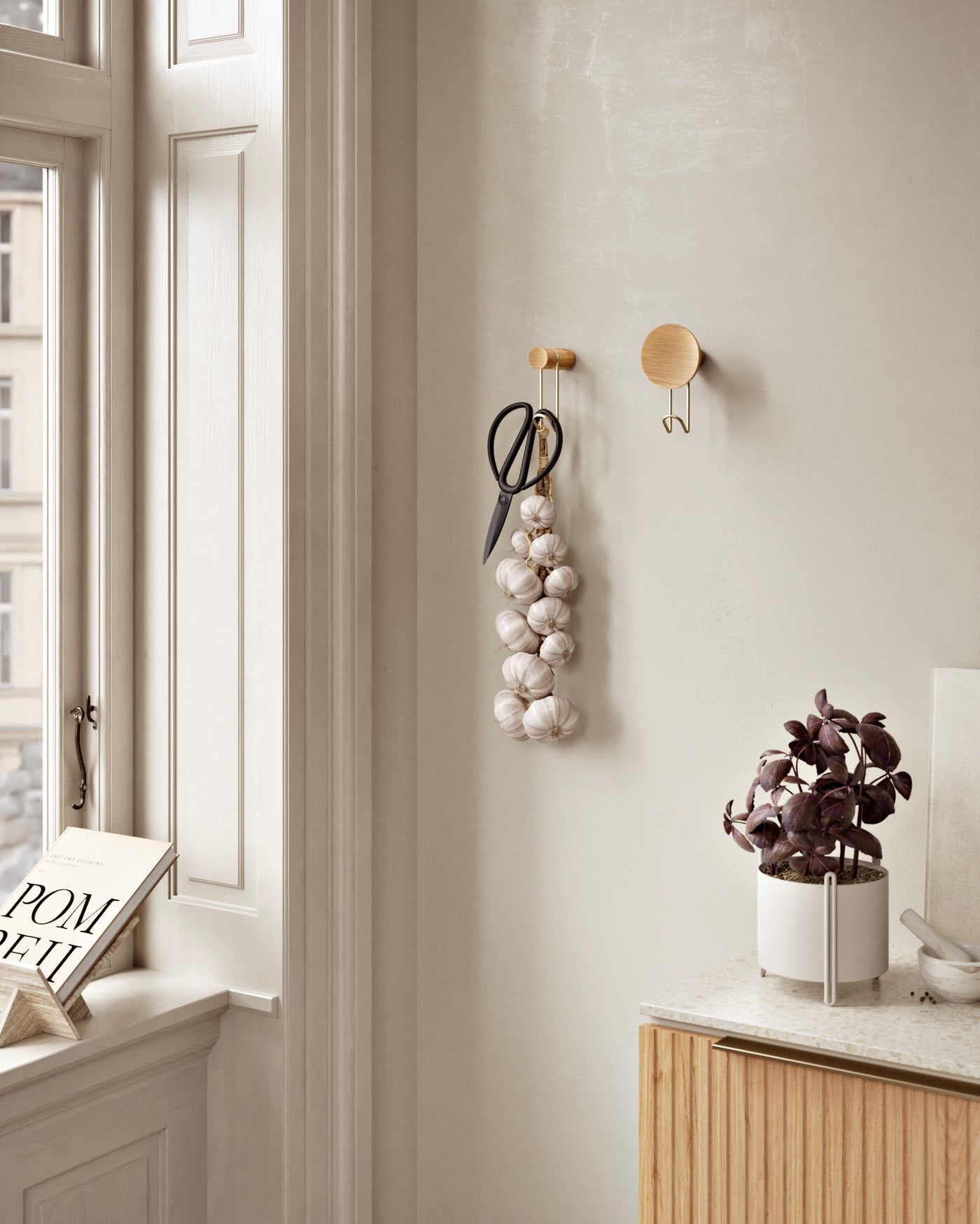 Simple yet graphic, the Around wall hangers combine interesting aesthetics and functionality. The Around wall hangers are available in two sizes and three colours that can easily be combined and create a harmonious composition on the wall. Choose between a black or satin metal hook for all finishes.