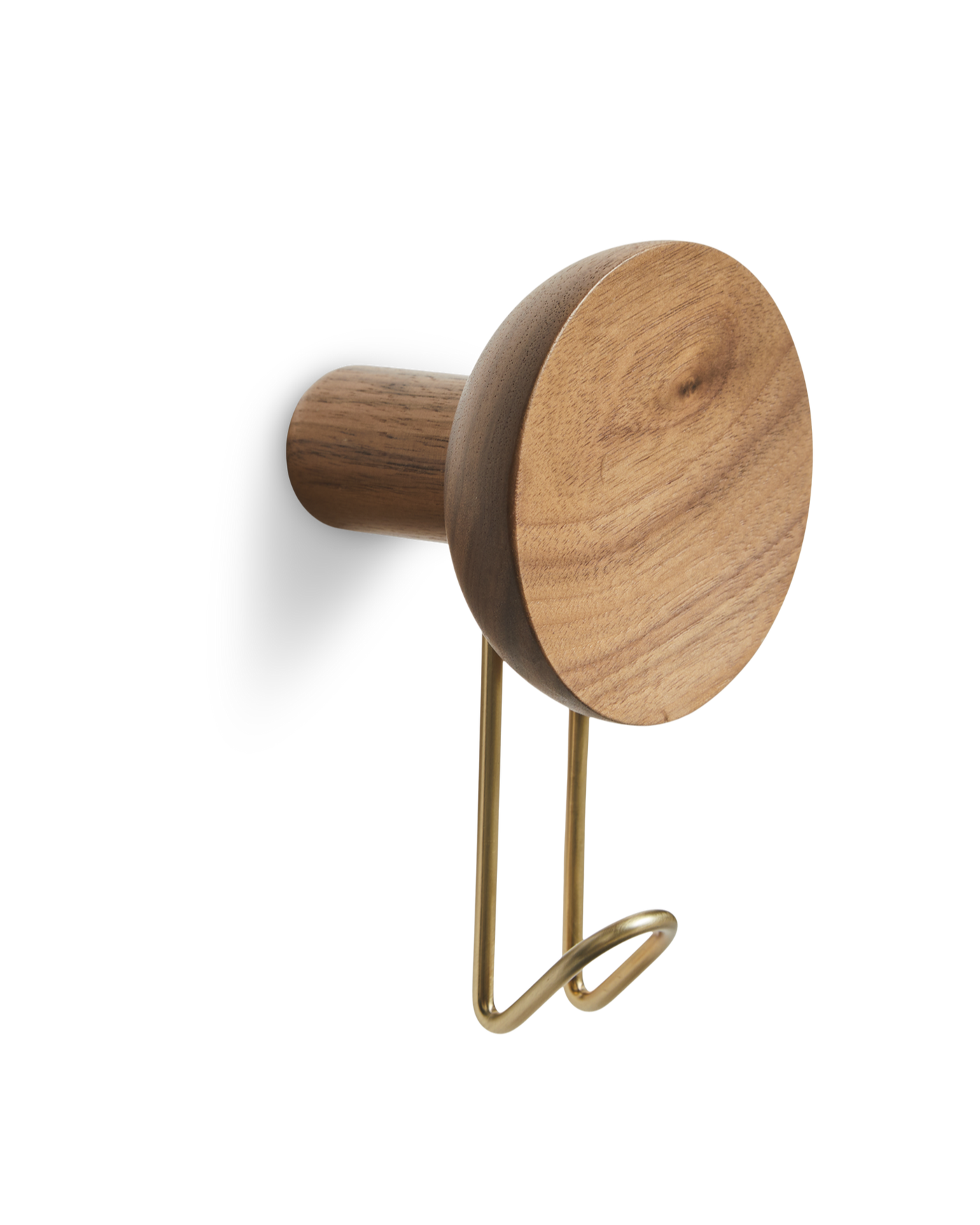 Material: Matt lacquered solid walnut with satin brass plated metal hook