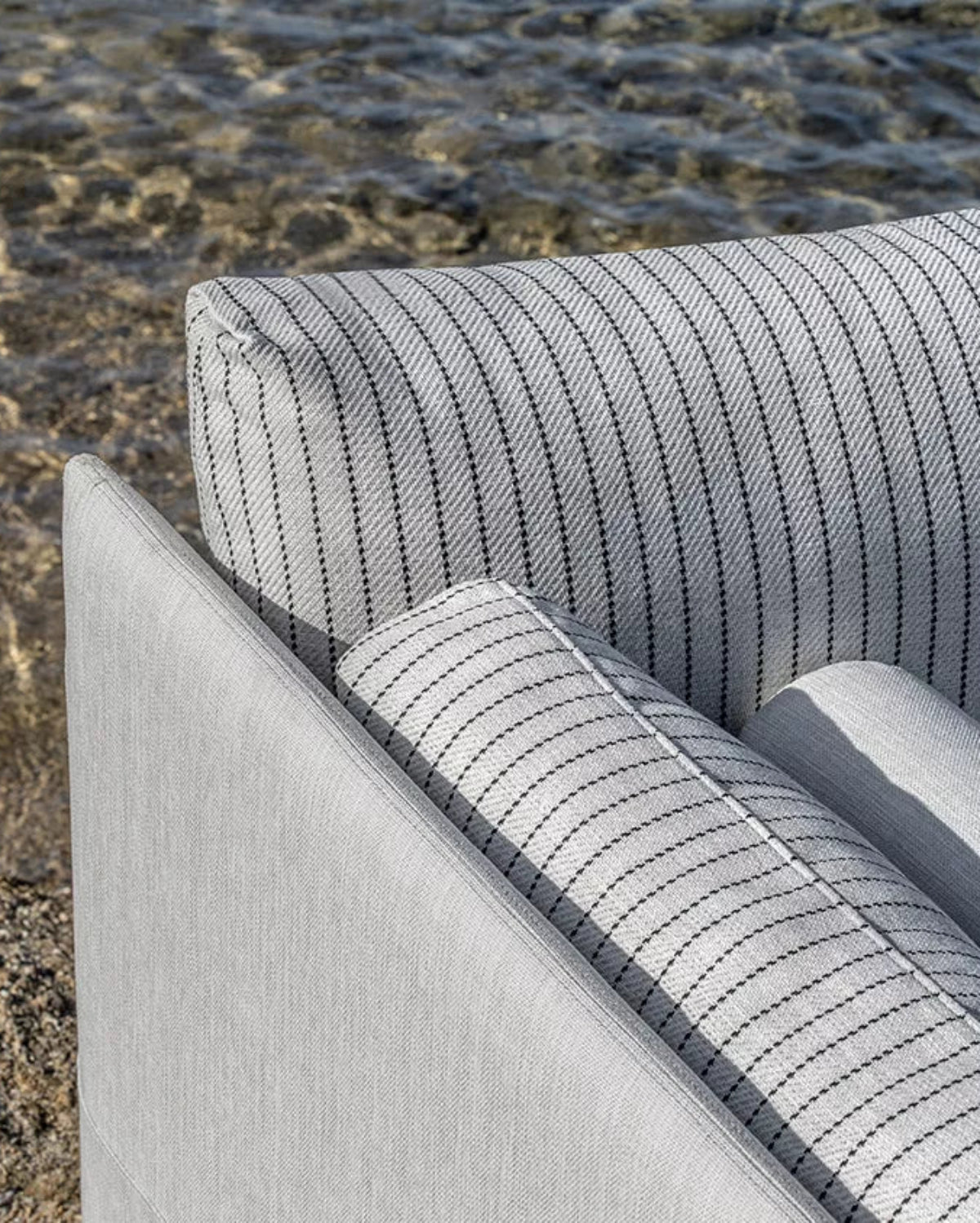 Baia has soft cushions resting on a base bordered by a system of fabric-upholstered panels. All the upholstery, with a soft comfortable handle, have properties and characteristics that ensure their performance in any outdoor context or situation and ensure that the furnishings preserve all their original beauty and function over time.