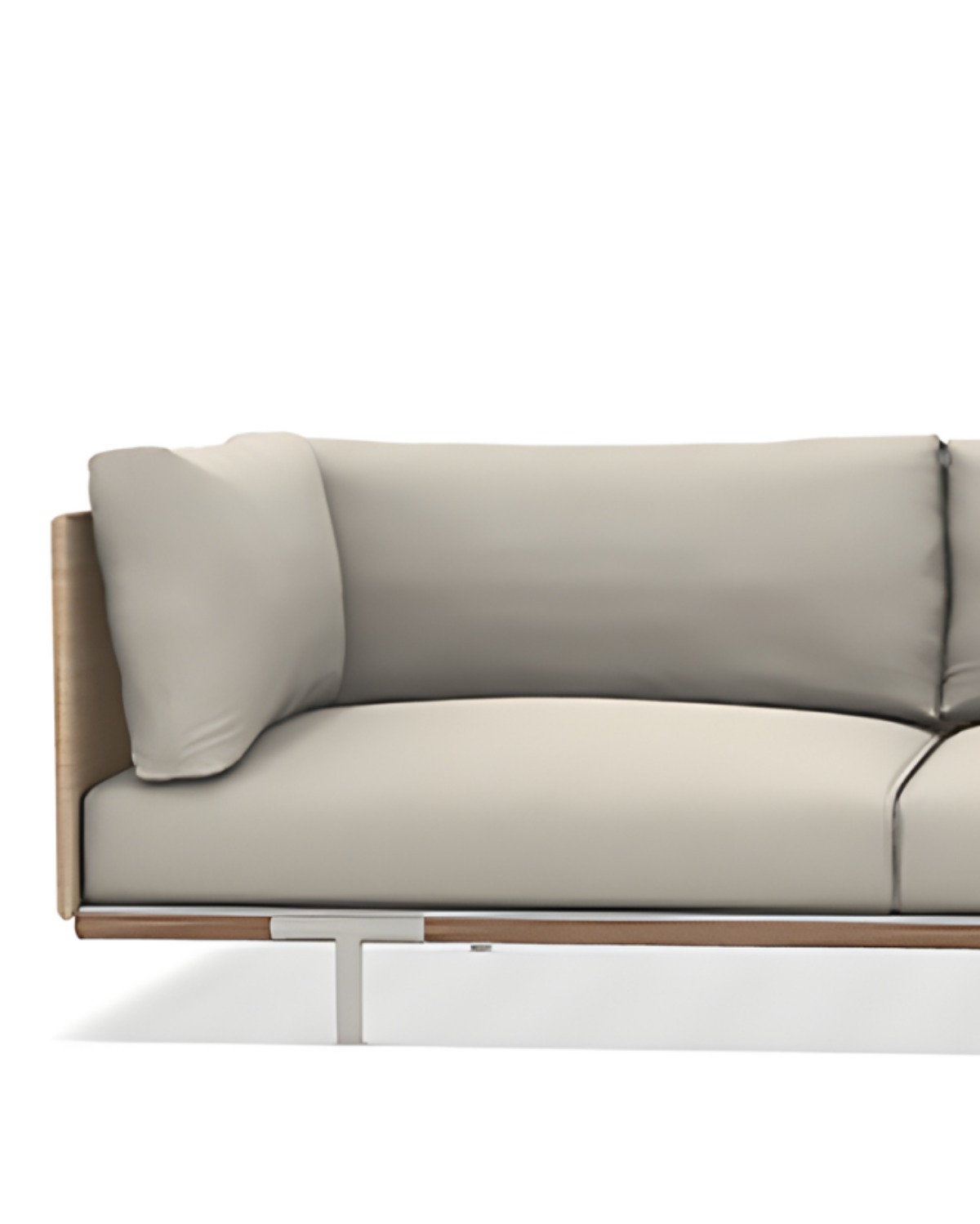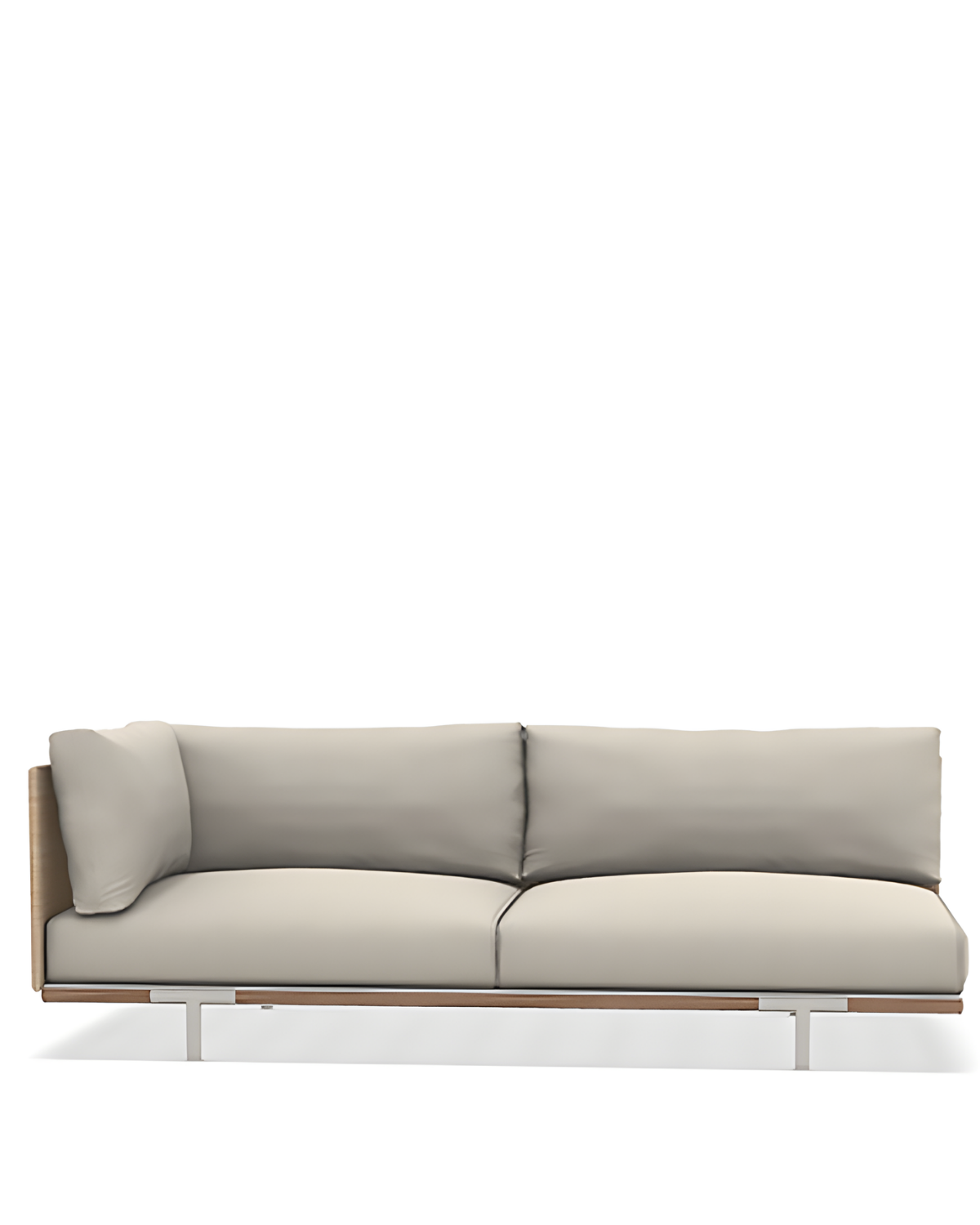 This reinterpretation of nautical design introduces a new material elegance: the fibre panels, evoking the warm and authentic texture of natural rattan, blend with the Limestone white aluminium frame and natural teak details, creating a bright and harmonious visual effect. The soft and welcoming Maiorca fabric cushions turn each piece into an invitation to wellbeing. Baia Natural is designed for outdoor settings that celebrate the sea — aboard yachts, cruise ships, marinas and exclusive waterfronts.