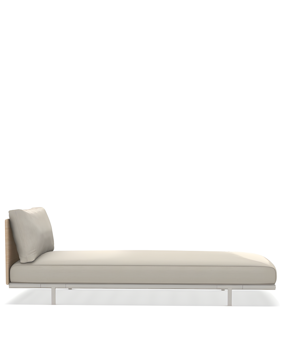 This reinterpretation of nautical design introduces a new material elegance: the fibre panels, evoking the warm and authentic texture of natural rattan, blend with the Limestone white aluminium frame and natural teak details, creating a bright and harmonious visual effect. The soft and welcoming Maiorca fabric cushions turn each piece into an invitation to wellbeing. Baia Natural is designed for outdoor settings that celebrate the sea — aboard yachts, cruise ships, marinas and exclusive waterfronts.