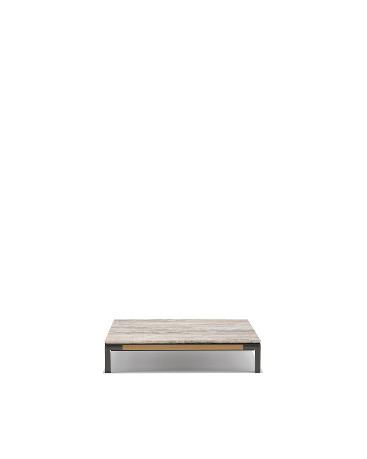 The Baia Square Coffee Table is made with a textured matt carbon and natural teak/textured matt carbon and Accoya/only textured matt carbon/textured matt silver and natural teak/textured matt silver and Accoya/only textured matt silver frame, and travertino silver/travertino/enamelled lava stone bone white table top.