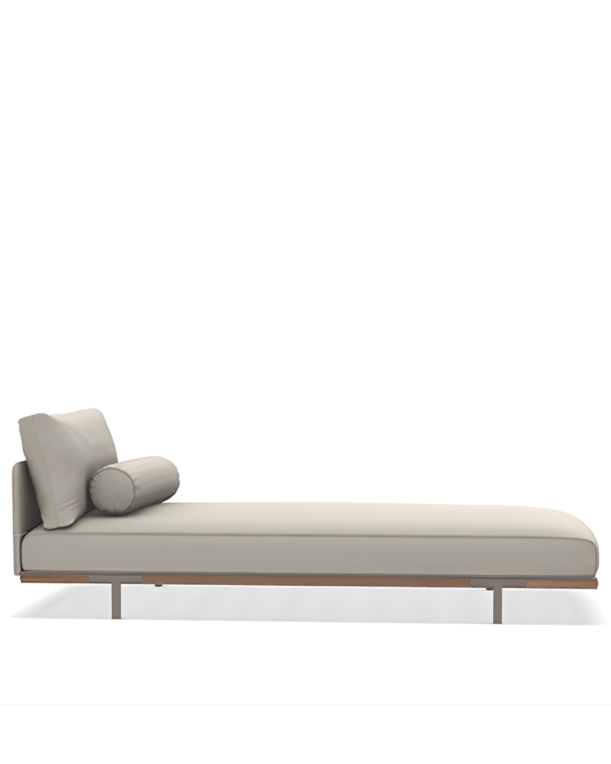 The Baia Sunbed is made with a textured matt carbon and natural teak/textured matt carbon and Accoya/only textured matt carbon/textured matt silver and natural teak/textured matt silver and Accoya/only textured matt silver frame, and polypropylene maiorca/polypropylene maiorca and polypropylene navy/linen colour and faux-leather cushion colours.