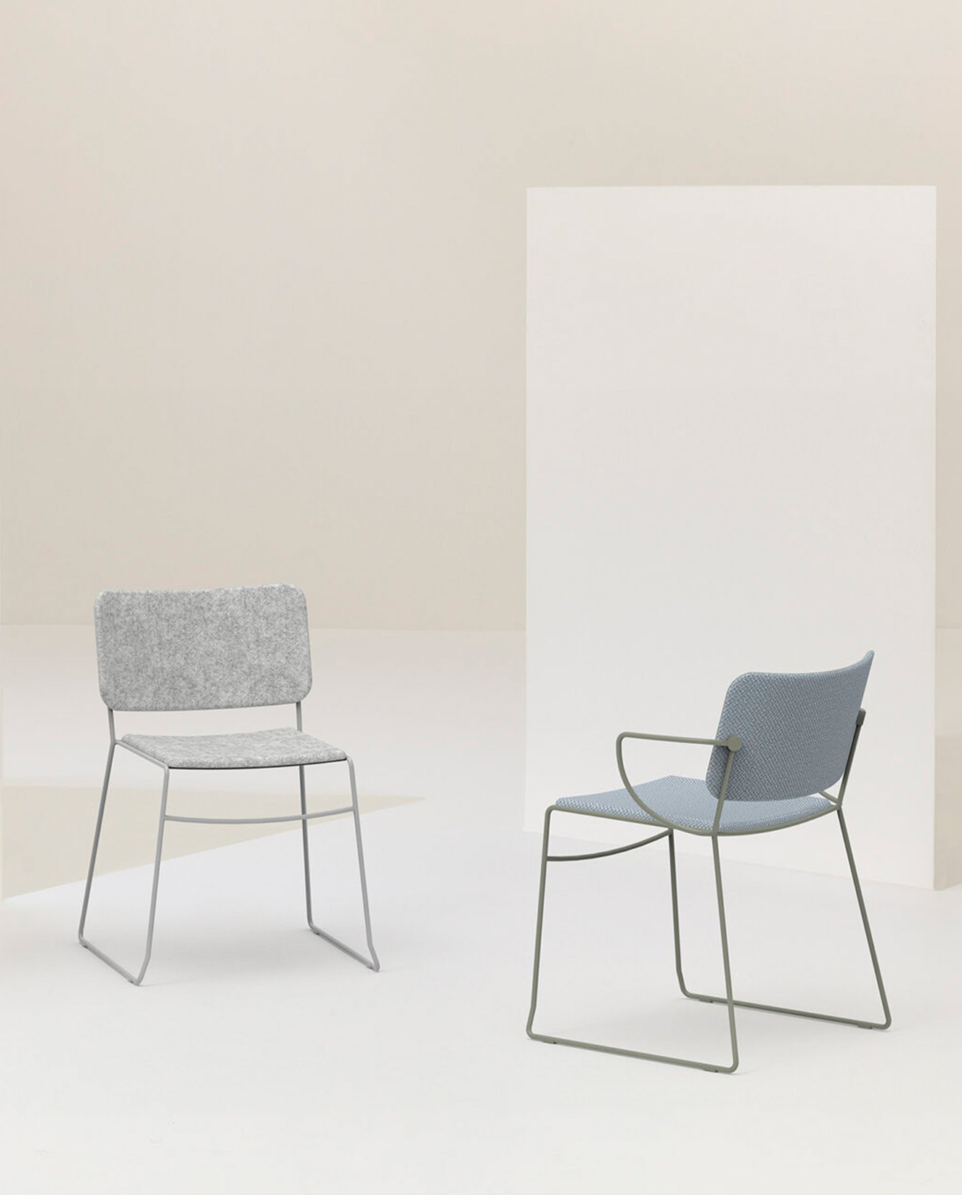The distinctive feature of Button Down is the detail of the button fastening of the back to the frame, which inspired the name of this collection, as simple and classic as the iconic button-down shirt itself. The tubular steel frame supports the padded seat and back, also available in beechwood or ash, creating a versatile chair suitable for various contract furniture settings.