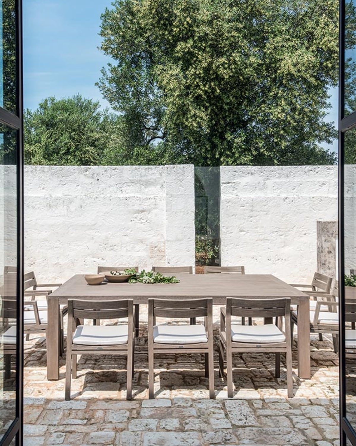 The Costes Rectangular Table is made with a pickled teak/natural teak wood structure.