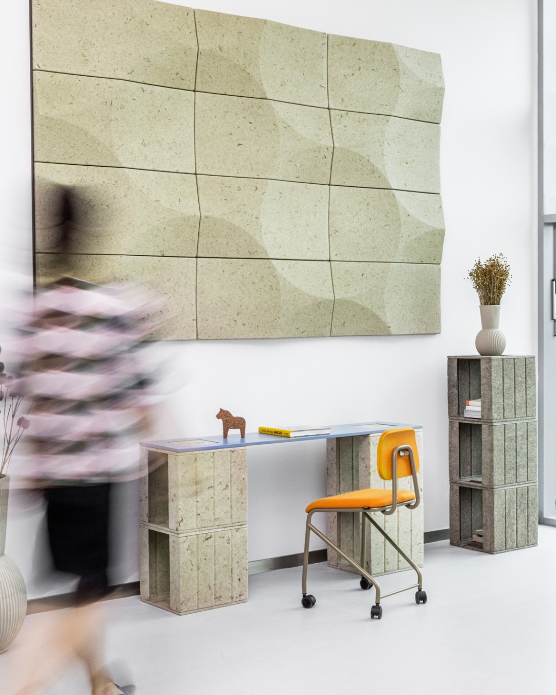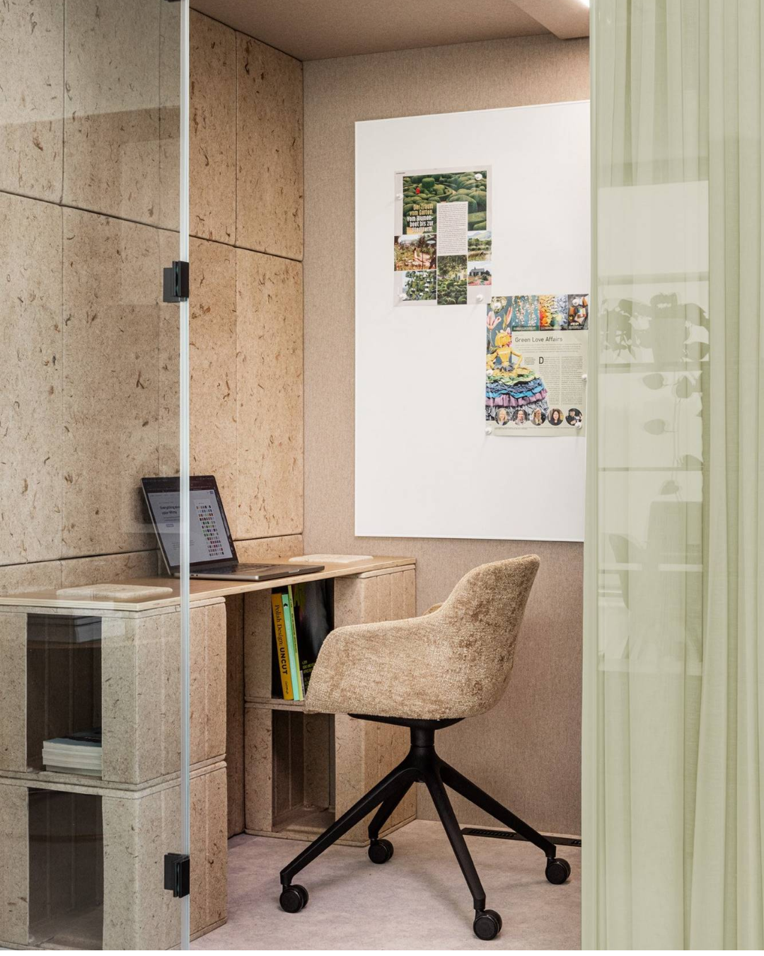 VANK_CUBE cube is a modular system of cube units manufactured using innovative biomaterial made from flax and hemp - fast-growing renewable plants that absorb much more CO2 than trees. As plant-based raw materials are its core components, it minimises the use of synthetics and contributes to the combat against climate change. The designs foster creative thinking and a culture of collaboration. It also lets individuals working remotely do their thing in a natural setting.