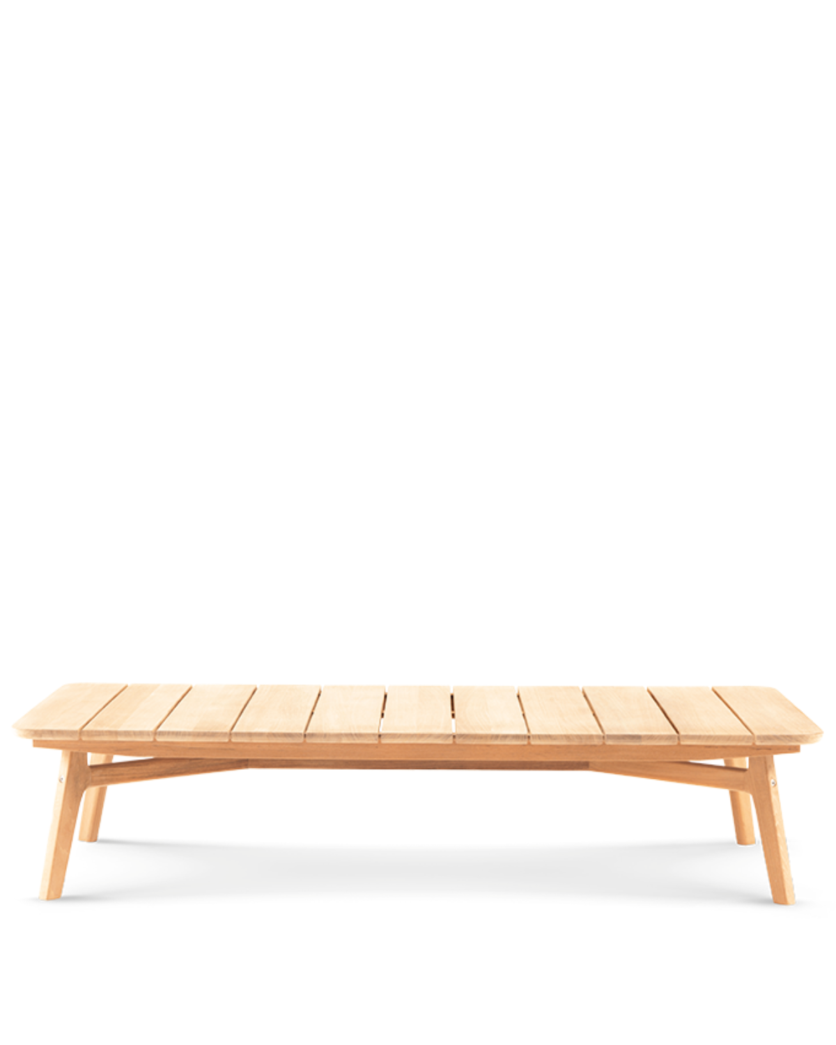 The Knit Rectangular Coffee Table comes in a natural teak/pickled teak frame.