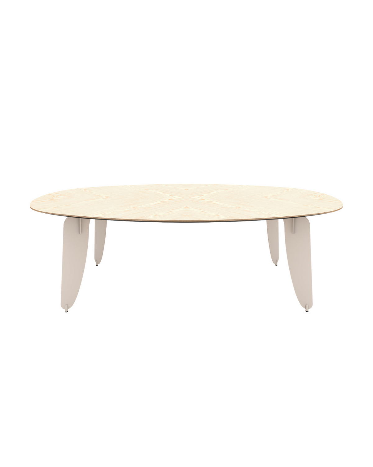 Friends with ‘green thumbs’ will tell you that they understand the excitement by each new leaf gifted to them from their plants. The New Leaf looks at the table base components in a new way, where 6mm mild steel plate surrenders to an organic shape of a leaf and transforms into an object with a serene presence.