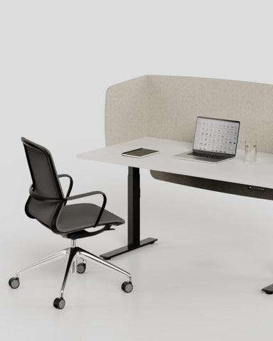 Frames: White or Black | Height-Adjustable | Wide range of laminate worktops | Contrasting edging available | Acoustic screens in any fabric/acoustic