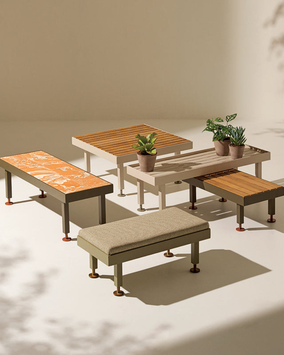 Botanical charm inspires outdoor design. Ethimo and Cristina Celestino have created an eclectic collection of benches and tables for outdoor living in simplicity and harmony. The evocative and symbolic name Seeds, a reference to the world of gardening and traditional greenhouse and nursery furnishings, was chosen to describe a collection essential in its forms yet elegant in its details, where warm and fine materials like terracotta and natural teak come together in a sophisticated balance of textures and processes.